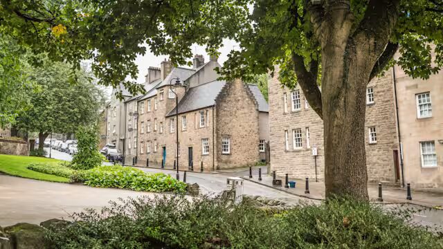 スターリング駅からキャンパスまでは、バスで約10〜15分。市街地にはイギリスの大手チェーン店が入ったショッピングセンターがあるので便利です。歴史的な中世の雰囲気あふれる大通りには地元の商店やカフェ、レストランが建ち並び、古都の雰囲気を味わいながら街歩きが楽しめます。